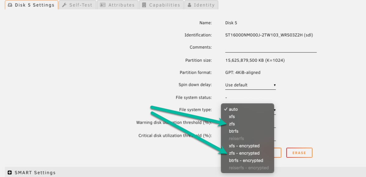 raptor) pour ouvrir son écran de configuration. - Définissez le type de système de fichiers sur