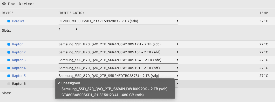 raptor)。 - 设置槽位数量以匹配您想要在主数据 vdev(s) 中的磁盘数量。