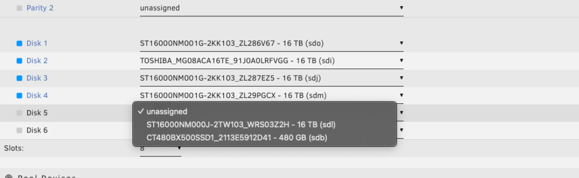 Unraid 将 ZFS 支持 vdevs 称作子池。大多数用户不需要这些,但有经验的用户可能会使用: